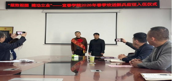 军歌嘹亮,红花映青春;壮志凌云,热血卫山河。为欢送优秀学子光荣入伍、投身强军伟业,313日,我校2026年春季欢送新兵应征入伍仪式在经济与管理学院会议室举行。校武装部、学院负责人、辅导员、学生代表、新兵家属及师生代表齐聚一堂,为即将奔赴军营的1名入伍学子壮行,共同见证这一光荣时刻。